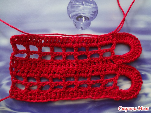 Хотела поэкспериментировать с филейным узором и ст. с нак., но изделие плохо тянется. Дальше буду вязать как на картинке, без экспериментов
