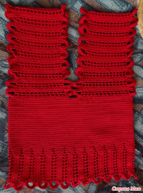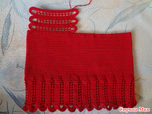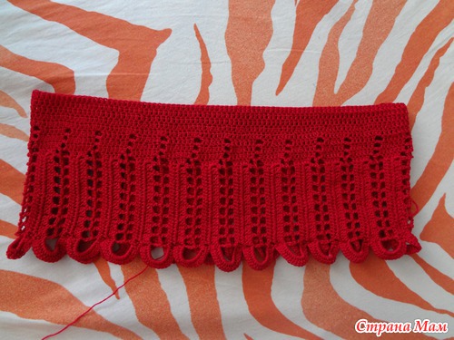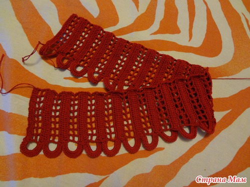 Это самый низ топика. Довяжу длину, замкну в круг и буду вязать по кругу столбики с накидом до нужной длины...