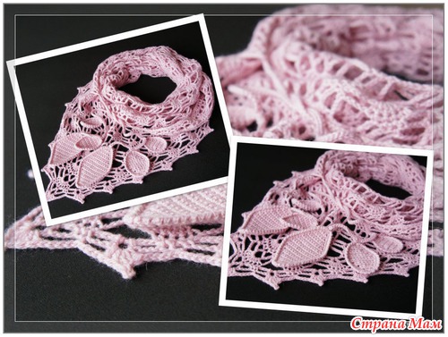 Коллега заказала к весеннему пальто. Цвет подбирала к цвету шапки, получился цвет в цвет (светлая астра). Пряжа "Москвичка" (Пряжа из Троицка, 50% шерсть, 50% кашемир, 200 м - 50 г), расход 100 г (2 моточка), крючок 4