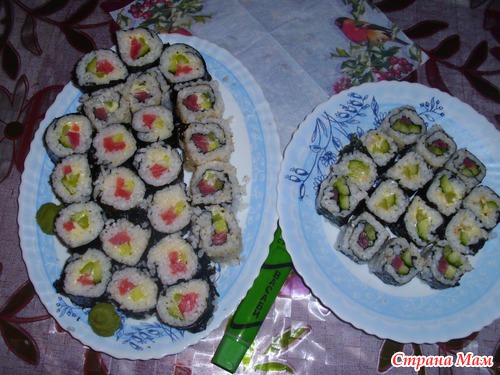 А вот наш первый опыт приготовления суши...)))