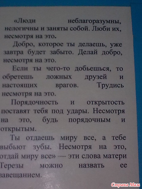 Недавно взгляд упал на слова Матери Терезы (это было размещено на стенде в холле больницы).