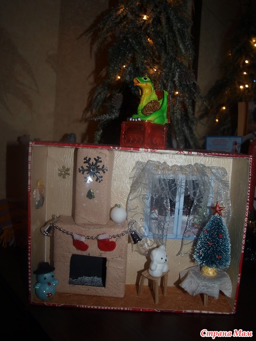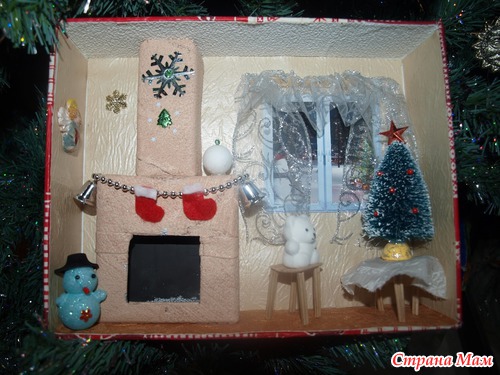 Облизываясь на изысканные миниатюры я взяла картон (после создания цифры 1ко дню рождения сына успела полюбить его) и поняла что могу сделать кое-что и сама! Накидала план и приступила к реализации! По деньгам один из самых бюджетных румбоксов, из купленного -комплект елочка и мишка -37р, ангел из глины -200р остальное все пордручные материалы.