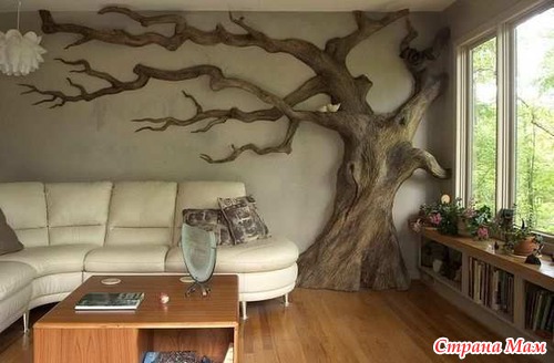 Дерево на стене приглянулось Шикарная дизайнерская идейка