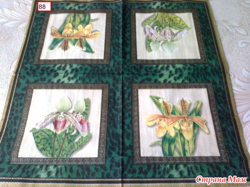 Не надо валяться под столом. Я делюсь, меняюсь "своим богатством". Если ничего не подберу в твоих заначках, то буду признательна, если для меня купишь бордюрный дырокол или угловой дырокол, а на эту сумму выберешь у меня салфетки. У нас здесь нет фигурных дыроколов. Большая часть моей коллекции пополнена салфетками по обмену из-за границы. Это Израиль, Америка, Греция, не говоря о ближнем зарубежье. Поэтому стоимость салфеток сложилась за счёт стоимости пересылок. И их цена варьируется в пределах 8 - 10 руб/одна. Те салфетки, которые я покупала сама 4-5 руб./одна