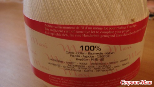 Я хочу чтобы моя юбка получилась легкой и воздушной, поэтому взяла тонкие нитки "Maxi" 100 % хлопок длина в 100 грамм - 565 метров.
