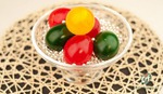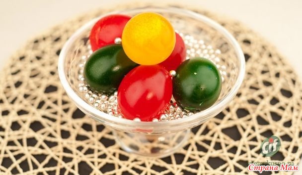 Возьмите сырое яйцо, пробейте маленькую дырочку, извлеките содержимое, затем промойте и в чистую скорлупу залейте подкрашенное желе. Дайте застыть в холодильнике, затем можно очистить - яйцо готово! Приятного аппетита!