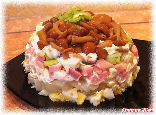 Салат с маринованными опятами