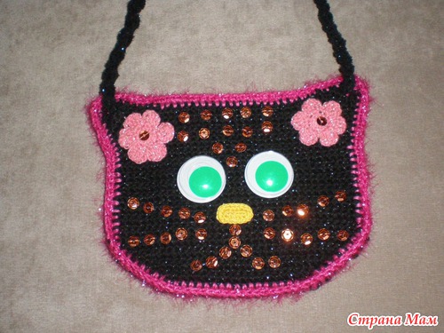 Решила объеденить свои последние вязалки в одну похвастушку, носочки крючком вязала первый раз, очень понравился мк http://stranamasterov.ru/node/101834. И небольшой шедевр, опять сумочка, захотелось кошечку черную с зелеными глазками.