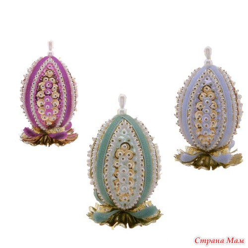 На булавку нанизывается бисеринка, паетка и вкалывается в яйцо из полистерола.