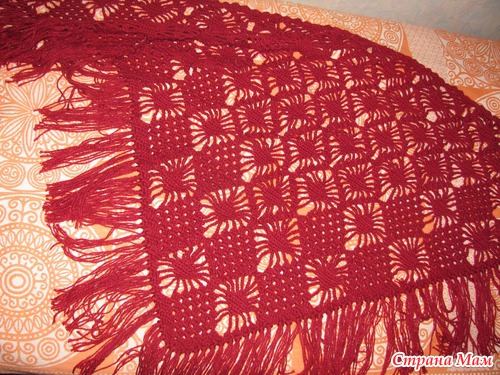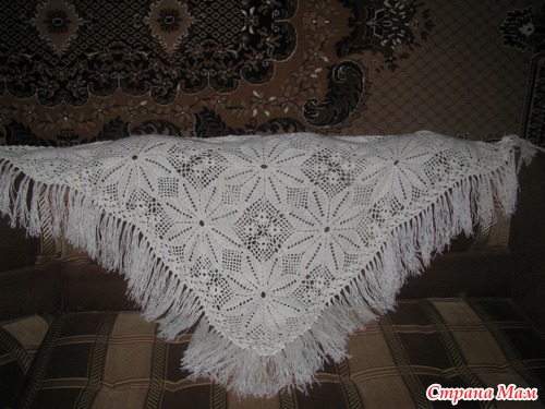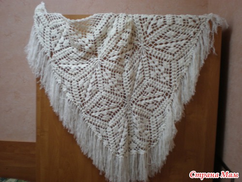 использовалась самая простая нить, зато тепло и красиво, если брать нить дороже выйдет и шаль на порядок дороже