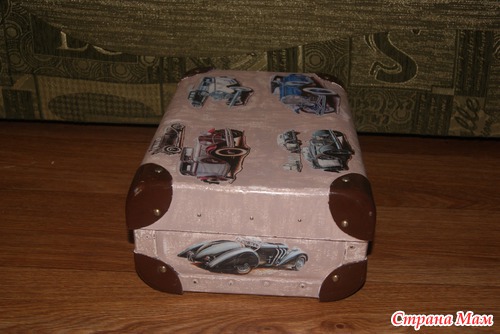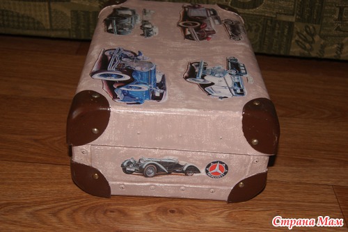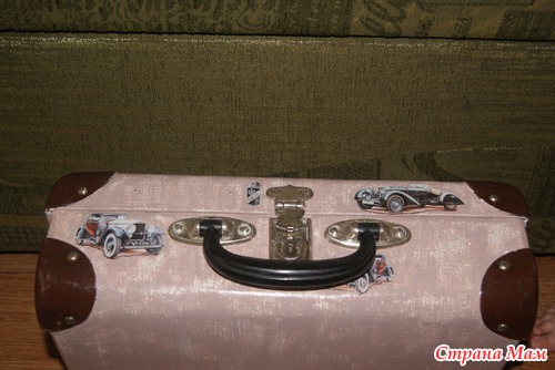 Попался мне старый чемодан. Долго я к нему примерялась и решила сделать его в ретро-стиле. Использовала карту фридекор Ретро авто. Теперь в этом чемодане живут мои салфеточки, он на защелке, что очень удобно - чтоб мелкая не порвала и не съела мое богатство.