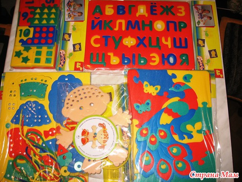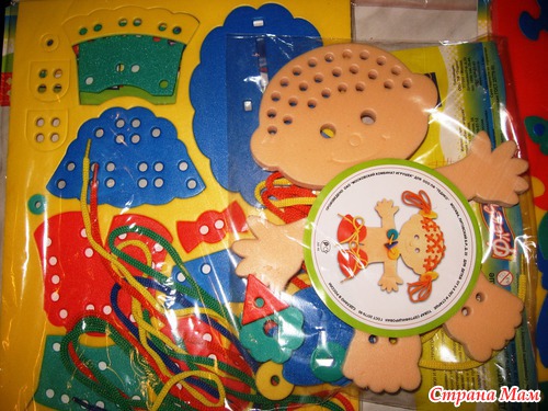 Все мозайки сделаны из очень плотного материала, а вот шнуровки тоненькие. У нас уже есть дома большой напольный коврик, типа Флексики, состоящий из 8 больших элементов-пазлов, а внутри каждого есть сборные элементы. Дочка с удовольствием собирает этот коврик. Надеюсь, что новые игрушки ей тоже понравятся! Вот только теперь думаю, подарить ей сразу все или растянуть удовольствие на долгий период?!