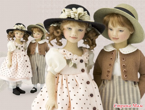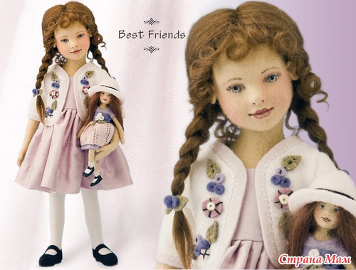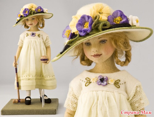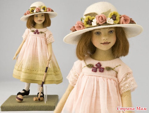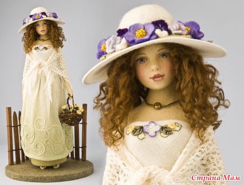 "Девочки! Я просто рассматривала очень подробно куклы Maggie Iakono... Но своих девушек решила делать формованными. Вы видели когда нибудь как делают шапки из фетра?Вырезала колодку - на нее фетр, затем зачистка швов, шплинты, каркас, набивка. Глаза стеклянные - вставлены, веки из фетра..."