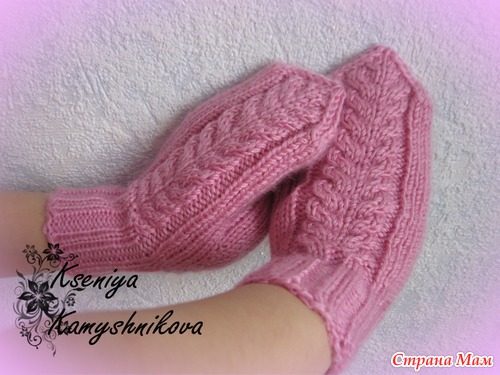 К нему связала свои первые, учебные варежки, получились они не очень-рисунок тянет к большому пальцу, перевязывать было неохота, оставила как есть, пряжа та же, спицы 3 и 3,5: