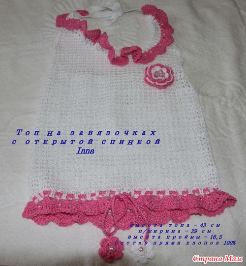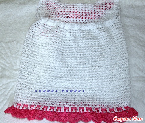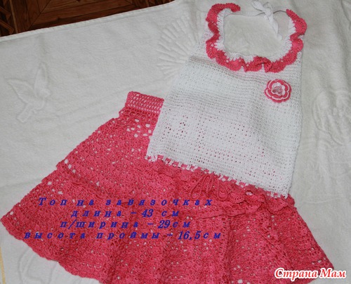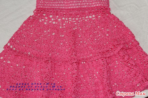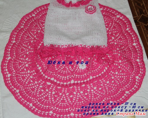 Этот комплект - топ и юбку я вязала крючком из пряжи итальянского производителя Anna 16 | Anna -Twist. Топ имеет сзади резиночку, спинка слегка оголенная, впереди завязочки вокруг шеи, длина топа позволит примерить его как туничку или убрать длину его с помощью шнурочка-гусенички, что находится внизу топа. Юбка выполнена в одном цвете (розовая) имеет форму каскада, поля которой связаны полусолнцем (без подклада). Пояс -резинка юбки оформлен красиво ажурной сеточкой, комплект не имеет швов (кроме плечевых)