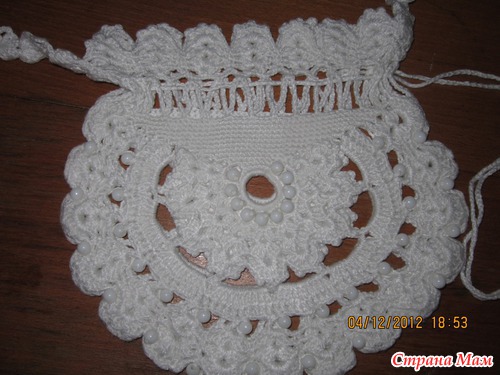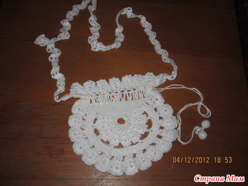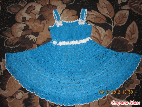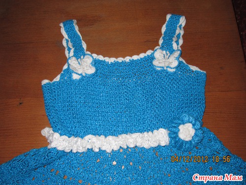 Вот такой получился сарафанчик: ниточки Газал Рива люрекс (бирюза) - 300 гр. и Газал рива (белые) - почти 100 гр. и еще к нему сумочка: Схема подола сарафана: Читать полностью