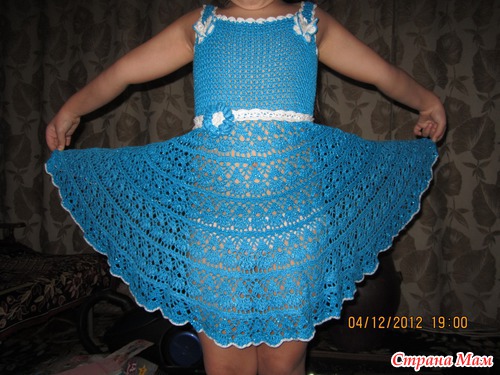 Добавила схемку подола сарафана. Верх вязала так: 2 столбика с накидом в одну возд.петлю, между столбиками воз.петля. Этот узор еще называют "галочки".