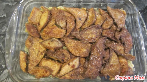 Сверху укладываем печень