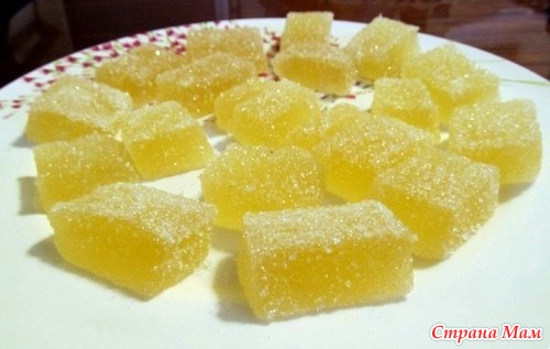 Когда мармелад застынет, разрезать на кусочки, обвалять их в сахаре. Мармелад готов!