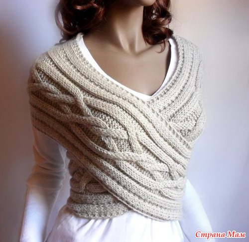 Нашла вот такую идею шарфа-жилетки. Думаю не плохо смотрится, к сожалению схемки и описания нет, но вроде все доступно и понятно. А можно и другой