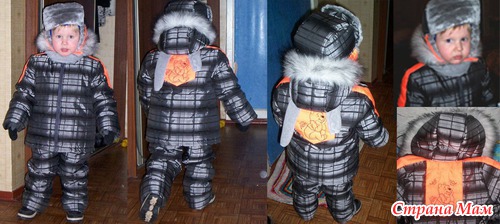 Сшила сыну костюм зимний и снова что-то не хватает, на яркой вставке выстрочила Винни Пуха.