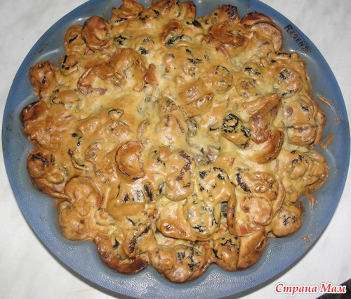 Выложить тесто в форму (можете ее смазать и посыпать сухарями или мукой или застелить пергаментом).