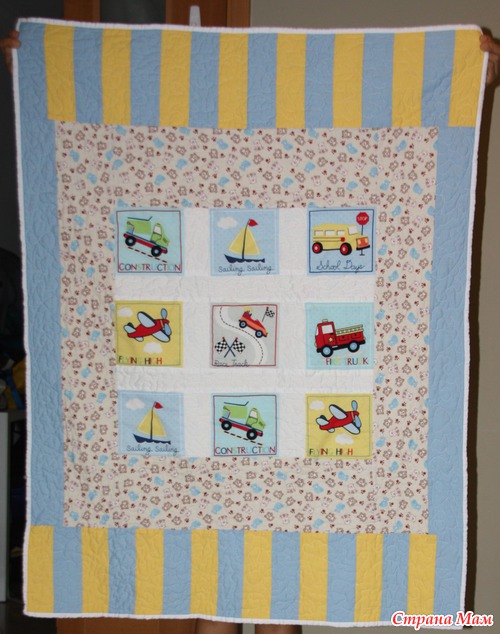 . Ну вот и сшилось покрывальце для мальчика. Когда уже дошивала, что то жалко стало с ним расставаться, понравилось уж больно. Теперь решила кому нибудь из своих пацанов сошью такое же.