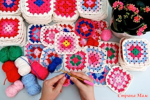 Подробная схема вязания "бабушкиного квадрата" для начинающих рукодельниц.