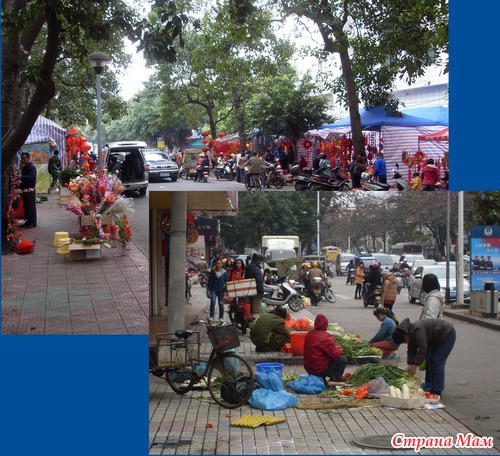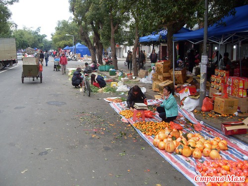 На улице так же образовалось много торговых мест с овощами и мандаринами.