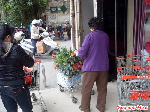 Китайцы покупали в основном овощи с огромными хвостами, видимо для благополучия и плодородия в новом году, потому что сегодня я видела морковь с хвостами и лук в окнах квартир и дверях маленьких магазинов (вот почему китайцы смотрели на меня как на ущербную когда я выбрала красивую ровную морковь, но с обтрепанными и наполовину отщипанными хвостами).