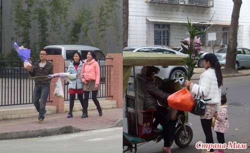 Еще в Гонконге (мы прилетели именно туда) я заметила много людей несущих огромные букеты цветов, в нашем городе тоже видели несколько человек с букетами (основная масса видимо уже купила цветы заранее).