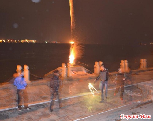 Вечером мы решили прогуляться по набережной, а там уже резвилась молодежь и не очень. Народу было не так уж много, но те, кто были, веселились по полной программе, запуская запрещенные фейерверки, бомбочки и шары со свечками.