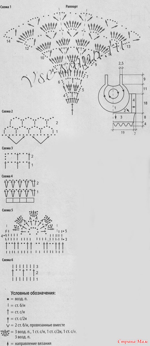 Перед: вяжите, начиная с центрального мотива по схеме 1.