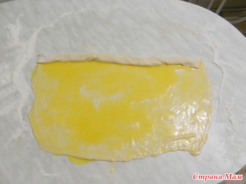 А, вот второй вариант, пласт смазанный растопленным маргарином.