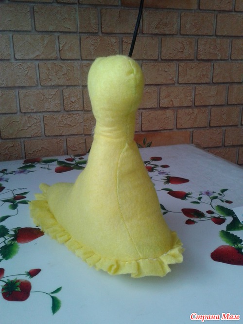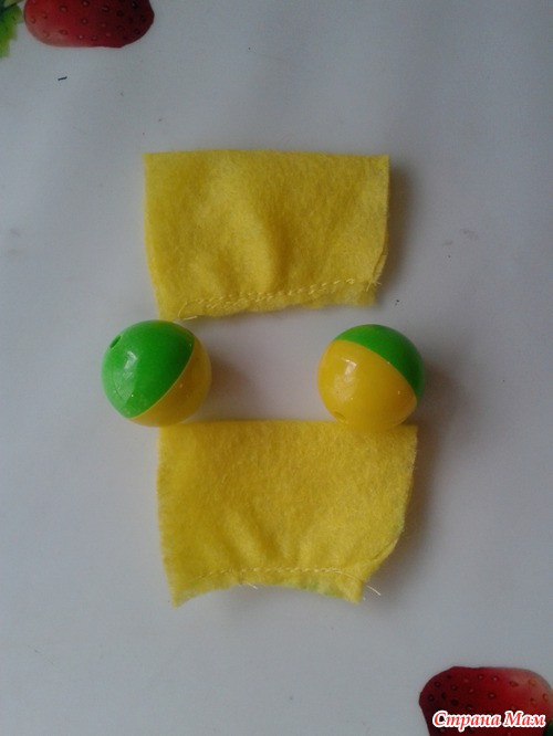 Для рожек сшила с 3-х сторон прямоугольники, внутрь вставила шарики от старой погремушки. Волосы сделала из фетра