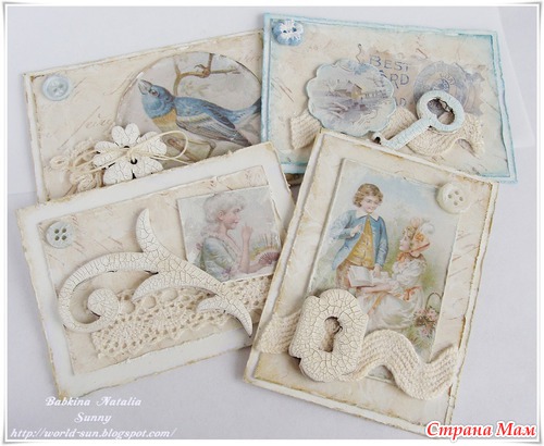 Здравствуйте, дорогие мои одногруппницы! Начало игры и первый этап здесь https://www.stranamam.ru/post/4909432/. И пора переходить ко второму этапу. Итак, обязательные элементы, которые нужно использовать во второй карточке АТС: что-то металлическое (скрепки, кнопки, специальные подвески, фольга), нитки (швейные, веревочки, пряжа), что-то белого цвета (часть фона, элемент). И по традиции, примеры из интернета (что б мы без него делали