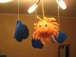 Вот такую игрушку я связала для дочки. У нас она висит на люстре и развлекает дочу еще с 3 месяцев. Вот описание и схемка: