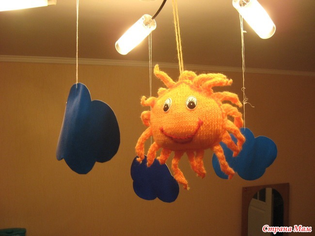 Вот такую игрушку я связала для дочки. У нас она висит на люстре и развлекает дочу еще с 3 месяцев. Вот описание и схемка: