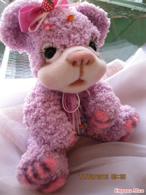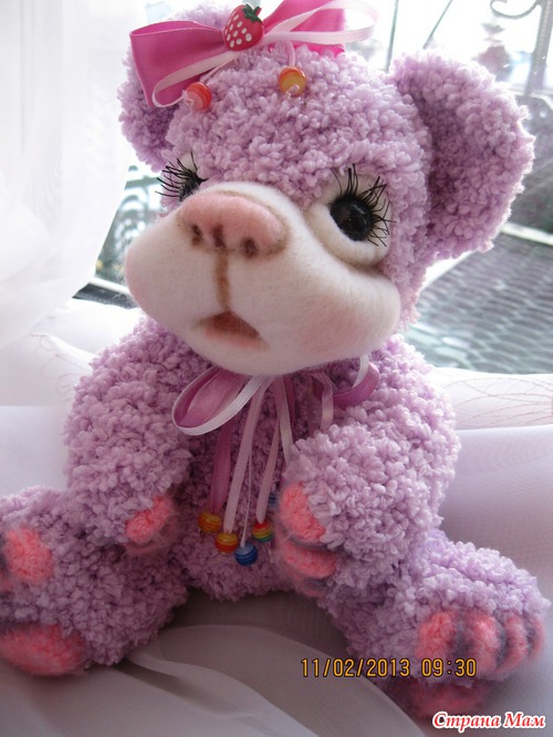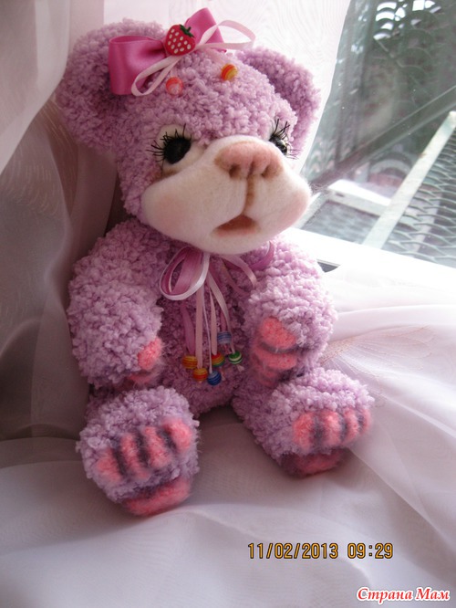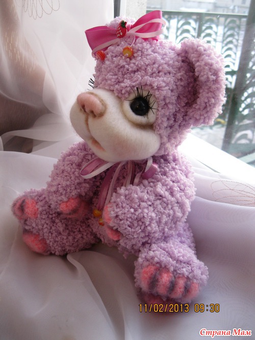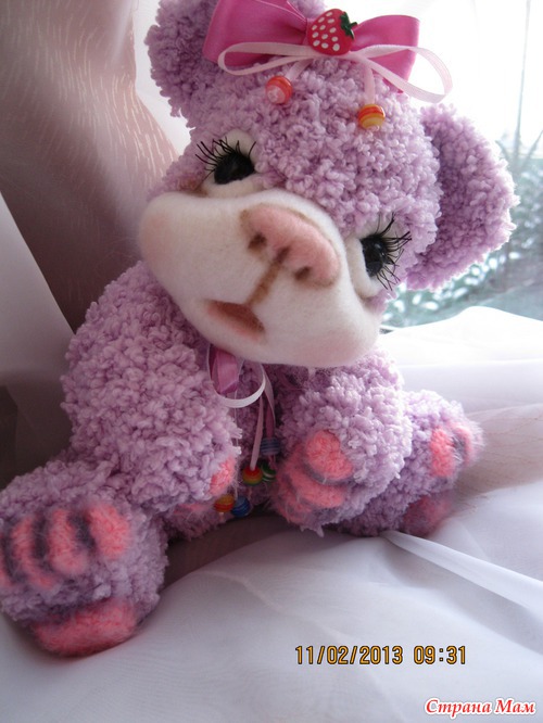 Мишутка связана крючком из детской фактурной пряжи. Мордочка выполнена в технике сухого валяния. Ростик 28 см. Головка поворачивается. Лапки двигаются. Сидит сама а стоит с поддержкой. Читать полностью