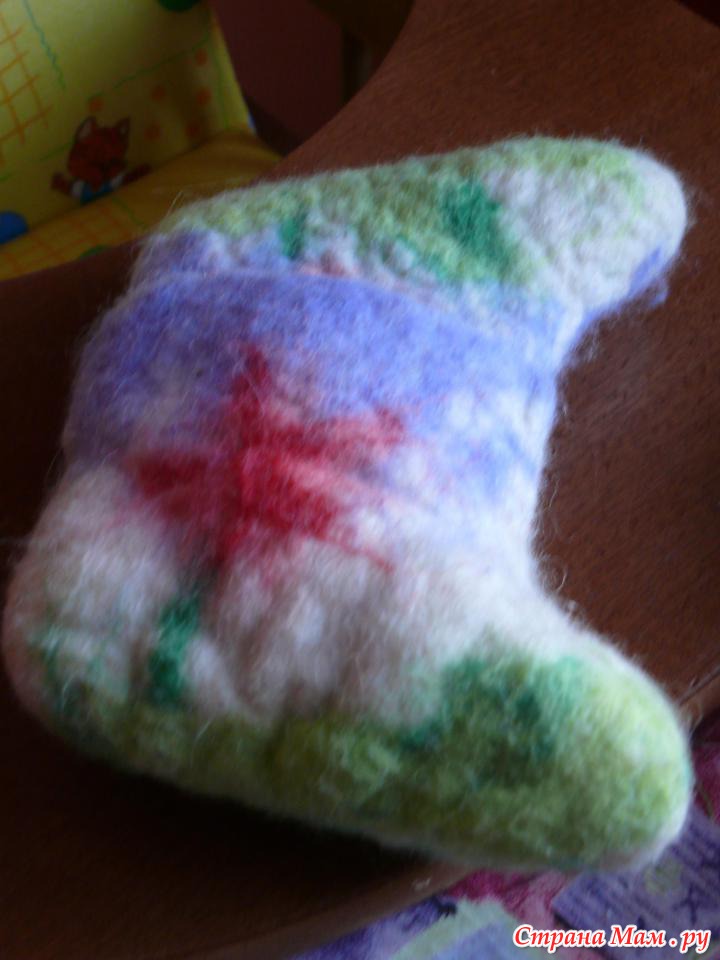 Стала валять валенки.Заваляла их в стиралке.Сначала они были слишком тонкие и мягкие, мне казалось, что в них будет холодно и они не держались на ноге хорошо, болтались и сползали.
