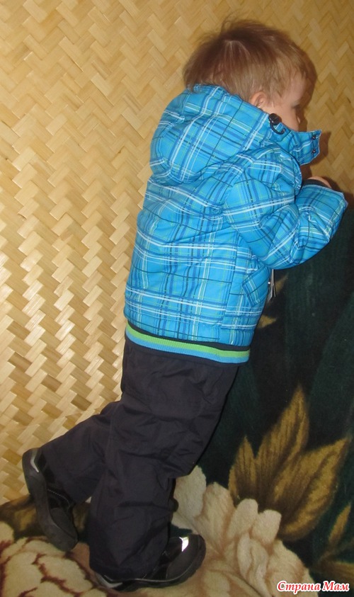 Собирали мы ряд темно-синих костюмов, но Свете с фирмы пришли голубые. Мне такой цвет даже больше понравился, не знаю видно по фоткам - глазищи у Владьки сразу голубые-голубые становятся. Ткань верхняя водоотталкивающая, так что насчет маркости, наверно, можно не волноваться - уже привыкла в межсезонье одежду губкой протирать по возвращении домой.