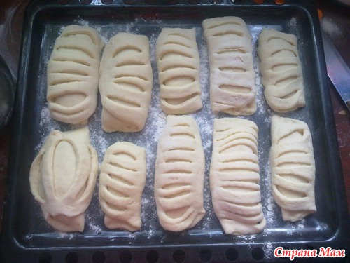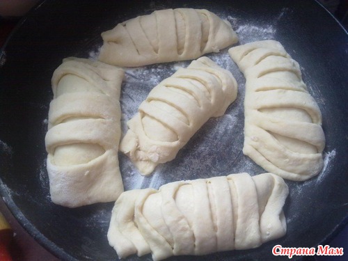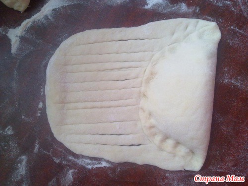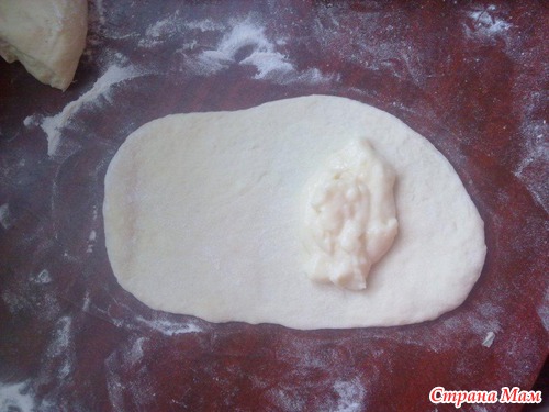 Я отрывала кусочками и раскатывала. но можно раскатать большую лепешку и разрезать на прямоугольники.