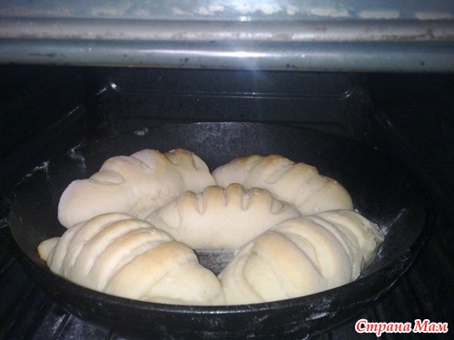 Оставляем минут на 20 для расстойки. Смазываем яйцом ( я не мажу, кисточки нет). Выпекать минут 30, до красивого румяного цвета, и обалденного запаха!