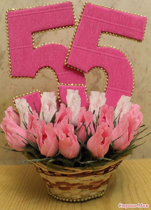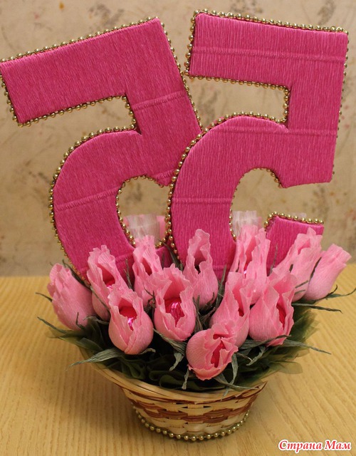 Спасибо!!! Цифры вырезала из картона, по две картоночки на цифру, каждую обклеила с внешней стороны гофрой, затем между ними проложила шпажки (большие зубочистки) и склеила горячим клеем.