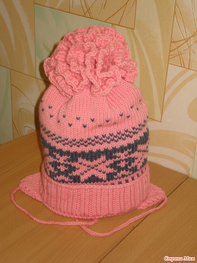 да на машинке все связано, рассчитала все в программе Мнемосина там шапочка с ушками а потом связала нужную длину и по 2п вместе и стянула верх, я поищу рисунок этот, Вязала двойную подгиб еще то есть ушки отдельно связала 2 детали , Начала с резинки потом перевернула ее и пошла узором связала нужное количество в длину и по 2п вместе и стянула , Далее Вязала внутреннюю часть навешала у резинки петли и ушки и все так же как и лицо только гладью и поменьше см.