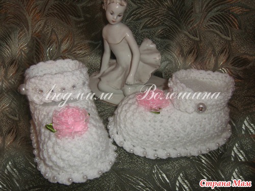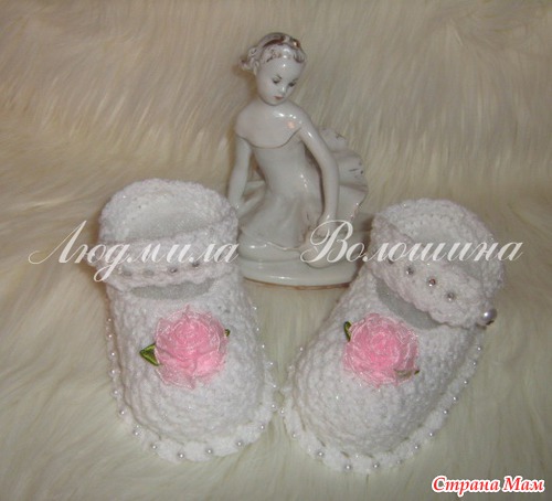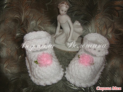 Нина, описание, как обычно, с Осинки в теме пинеток,в дайджесте на 10 страничке туфельки с пуговками от Палитра.. я изменила рисунок на рис и вяжу одну застёжку.