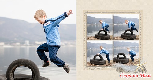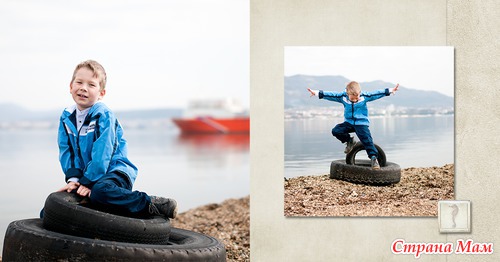 Эх, была-не была! Фотографии с прогулки с сыном были сделаны год назад. И вся серия снимков мне очень нравилась. Давно хотела попробовать напечатать фотокнигу, но никак не решалась. И вот два разворота и форзац!