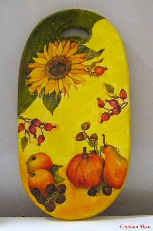 Вот такие две разделочных доски сотворились в подарок маме. Была просьба сделать одну доску для мяса, другую для овощей, в абсолютно разных тематике и цвете, чтоб домашние не путали, какая для чего.