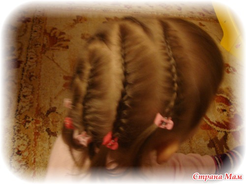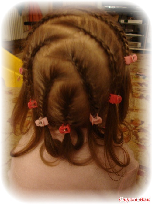 прикольные косы! мы пробовали в 1-м классе что-то типа такого заплетать чтобы хотя бы дня на 3 хватало. этим летом заплела ей что-то около 30-ти косичек с нитками. она 3 недели проходила, никак не хотела расплестись, 4 раза голову с ними мыла. но когда все-таки расплели, это был ужОс! не повторяйте наших ошибок! волосы в начале косичек сбились в колтуны, с трудом расчесали и потеряли изрядное количество.
