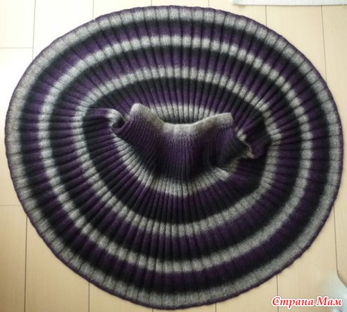 Вязать резинкой 3*3 на высоту 19 см, затем ряд с прибавками: 3лиц, накид, 3изн, накид, повторять до конца ряда = 560п.
